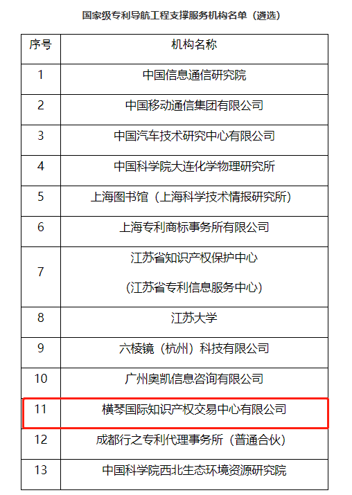 横琴国际知识产权交易中心获选首批国家级专利导航工程支撑服务机构建设单位
